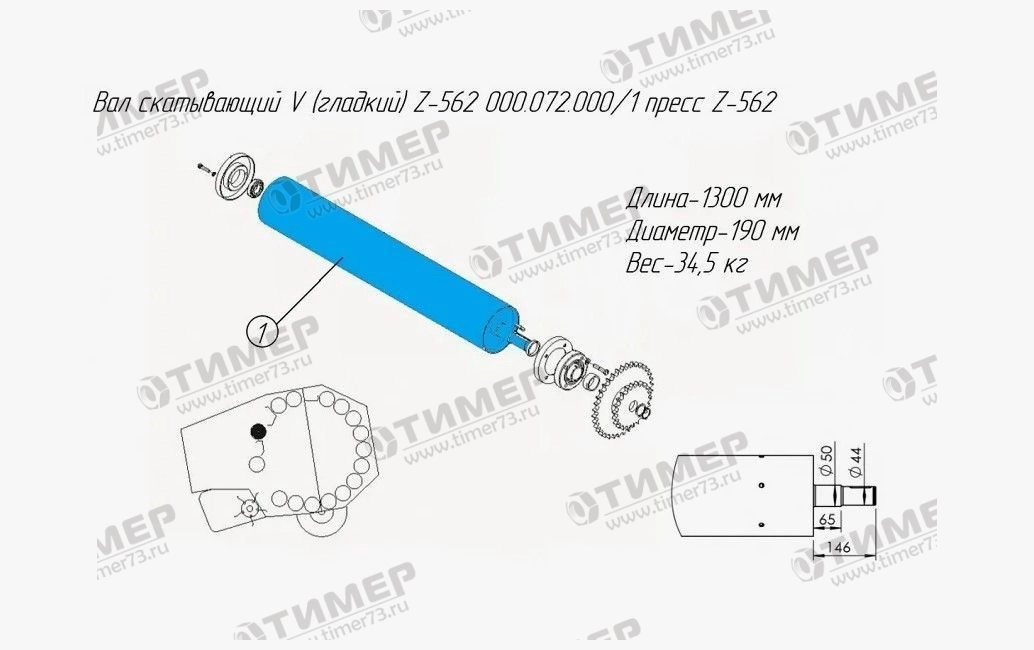 000.072.000/1 Вал скатывающий V гладкий Z-562 пресс