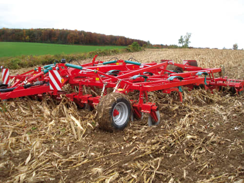 Система смешивающих дисков (FMD) - это опция, которая позволяет избежать эффекта 'закипания' передней части культиватора. Система FMD состоит из зубчатых полых дисков, которые идеально подходят для работы с большим количеством пожнивных остатков. Система FMD предварительно перемешивает остатки для лучше инкорпорации. Регулировка давления осуществляется гидравлически из кабины трактора.