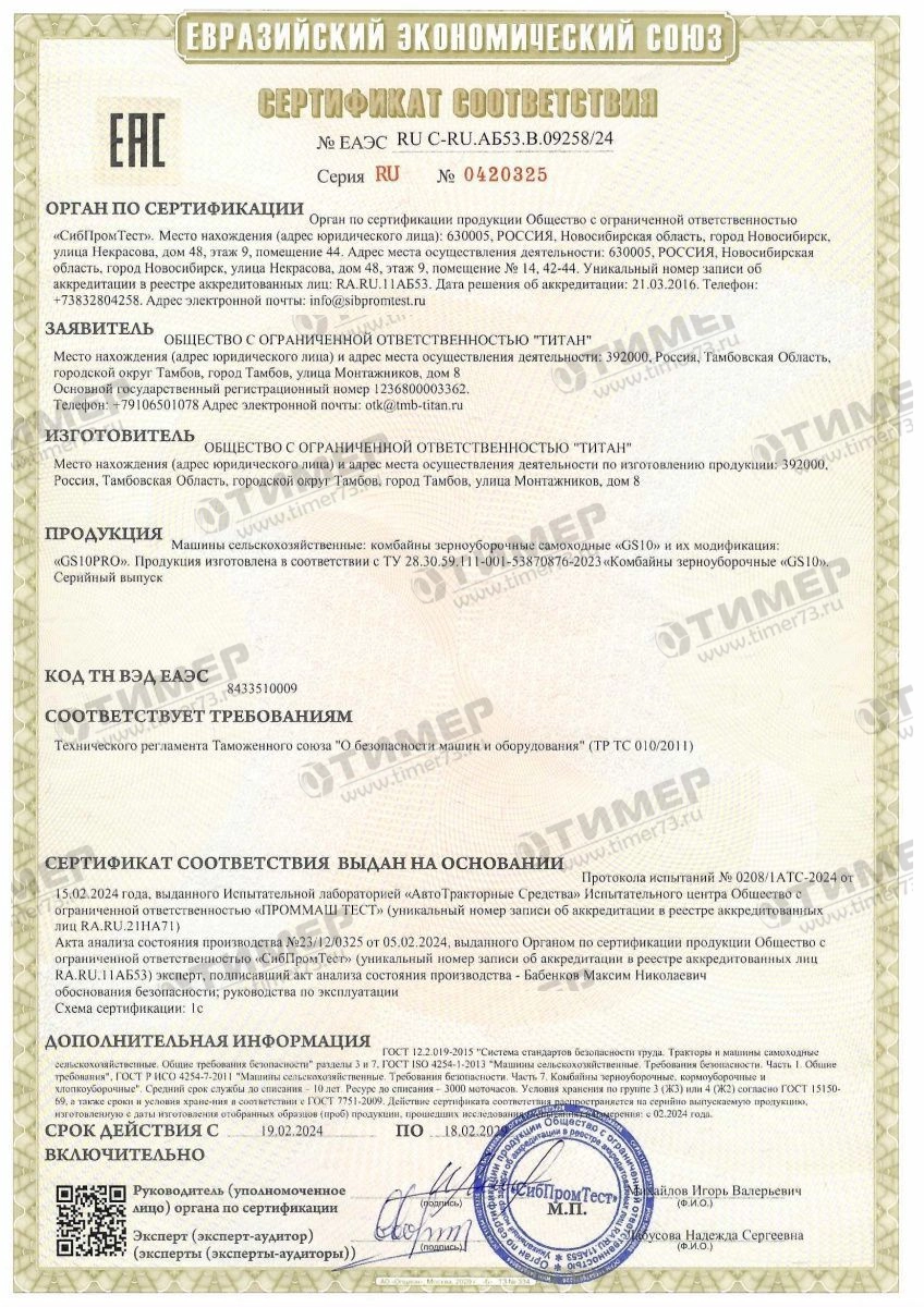 - Ширина молотильного барабана 1500 мм